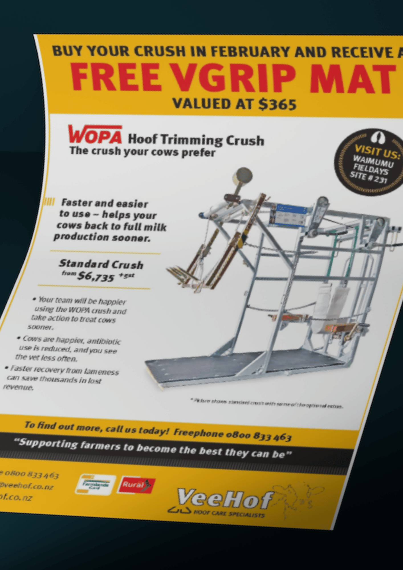 For Veehof, this meant three key areas of focus; ease of navigation, a platform for education and information sharing along with a product showcase. Providing farmers and Veterinarians a website experience which makes building their own Wopa Cattle Crush (Standard, Mobile, Pro and Pro+) with all the bells and whistles (20 plus add-on’s) was a challenge our creative team were up for. Our approach to communicating all the important points like always, centred on the end goal goal in mind; building brand awareness and contributing towards business performance without forgetting the addage features tell, benefits sell.